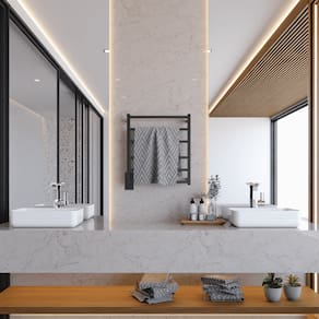 Toalheiro Térmico Prime Clean Preto Bivolt Bilateral Modelo: Prime Clean (cabo elétrico oculto) Dimensões: 53 x 59,2 x 8,5cm (larg. X alt. X prof.) Acabamento: Preto Fosco Nº barras: 06 barras retas quadradas Potência: 65W Consumo: 0,065 KW/h Temperatura: 35ºC acima da temperatura ambiente Temperatura Máxima: 70 a 75ºC Tempo aquecimento: 15 minutos para chegar na temperatura ideal de uso Tensão: Bivolt Posição saída do cabo elétrico: Bilateral Posição da Tecla: Lado esquerdo embaixo Garantia de fábrica: 1 ano Marca: Thermo Benefícios: - Toalhas sempre quentes e secas. - Design elegante que valoriza o ambiente. - Fácil instalação e uso. - Bivolt, adaptável a diferentes instalações elétricas. - Baixo consumo de energia. Com o Toalheiro Térmico Prime Clean, você transforma seu banheiro em um espaço de conforto e bem-estar.