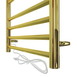 Toalheiro Térmico Kazalinda Redondo Dourado Polido com Timer Embutido - Fio Lado Esquerdo