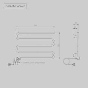 Dimensões: 56,5 cm x 39 cm x 8,2 cm (LxAxP) Peso: 2,5 kg Acabamento: Preto Fosco Material: Aço Voltagem: 220v N° de barras: 5 barras retas redondas Potência: 70W Resistência fio resistivo Lado do fio: Esquerdo na parte inferior do toalheiro Marca: Seccare Garantia: 3 anos pelo fabricante