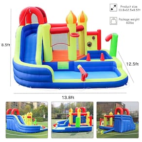 O Tobogã Inflável JOOLOOG é feito de Oxford 840D e 420D, resistente a perfurações, garantindo segurança e durabilidade. Possui proteção com tela de malha ao redor do topo do escorregador para evitar quedas acidentais. Com 8 áreas de diversão, incluindo escorregador longo, parede de escalada, canhão d'água, cesta de basquete, piscina de respingos, piscina funda, jogo de argolas e área de bola. Além de entretenimento garantido, ajuda no desenvolvimento físico e mental das crianças. Acompanha compressor de ar 450W, bolsa para transporte, kit de reparo e estacas para maior estabilidade. Fácil de inflar, desinflar e armazenar, ideal para festas, feriados e diversão em família ao ar livre.