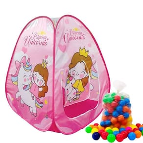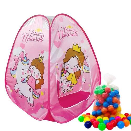 Toca Barraca Infantil Dobrável Pop Up + 50 Bolinhas Princesa Unicórnio