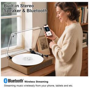 Característica especial: Vintage Retro Wireless Portable, Tampa acrílica transparente, Toca-discos de vinil 3 Velocidades com Alto-Falantes Bluetooth, USB/AUX/RCA, MP3,
