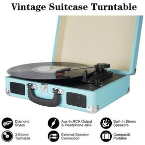 Reviva a nostalgia da música com estilo vintage usando este toca-discos em maleta. Seu design clássico de maleta e recursos modernos permitem que você desfrute da música de forma retrô. Com opções de conexão variadas, é possível transmitir música através dos alto-falantes estéreo embutidos ou conectar outros dispositivos via saída RCA ou entrada auxiliar. Com 3 velocidades diferentes, você pode reproduzir discos a 33, 45 e 78 RPM. Este toca-discos de correia antiga oferece pés de isolamento que evitam vibrações, garantindo qualidade sonora premium. Fácil de usar, não requer equipamentos extras. Com funções como controle de volume, botão liga/desliga automático e opção de usar fones de ouvido, este toca-discos é perfeito para iniciantes e amantes de vinil.