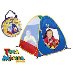 Toca em tecido poliéster colorido, possui armação em aço e sacola para transporte.