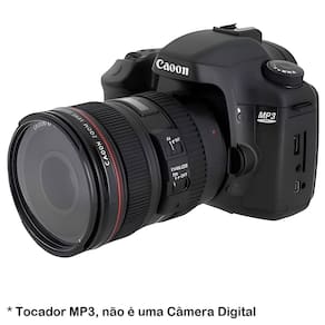 O Tocador MP3 Player Music Station em Formato Câmera DSLR é um sistema de alto-falante com leitor de MP3 é um tal item extremamente inovador e exclusivo. imagine a surpresa dos seus amigos quando você reproduzir suas músicas favoritas em um dispositivo que se parece com uma câmera. Ele tem entrada de linha para que você possa conectar seu ou outra fonte de música e usar como um alto-falante ativo somenteEm Formato de Câmera DSLR , com este Tocador MP3 Player Music Station você poderá desfrutar de boa música com este alto-falante USB. Este pequeno dispositivo é capaz de reproduzir áudio / arquivos de MP3 através de porta USB ou tomada de áudio padrão de 3.5mm. Ele também tem a capacidade de ler drives Pen Drives USB, Cartões de Memória SD, SDHC, e MMC; e significado que você pode tocar sua música para a direita fora do cartão de memória. Ele também suporta os formatos MP3 e WMA. Este alto-falante em forma de câmera requer 4x pilhas AA não inclusas e vem também com um controle remoto. Você pode ligar o alto-falante DSLR através de uma porta USB ou 4x pilhas AA não inclusas , e você pode conectar a música através de um fone de ouvido padrão. Ainda melhor, há um slot SD e uma porta USB para a sua música digital, que pode jogar diretamente do cartão. Tocador MP3 Player, não é uma Câmera Digital. Marca: Não Informado Ean: 0744110428056