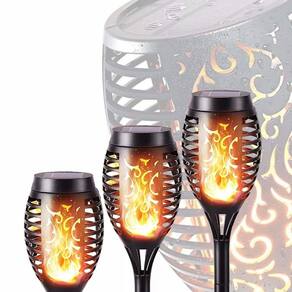 A Luminária Solar para Jardim é composta por 12 LED's, cada LED pisca uma luz amarela quente, imitando a chama real brilhando ao vento. Para a sua festa no jardim, churrasco e camping, produz um ambiente acolhedor e sofisticado.