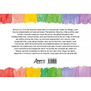 Este é um livro de poemas dedicado a crianças de todas as idades, com textos elaborados em parceria por Morgana e Helena, mãe e filha, que estão vivendo todas as cores do amor, do aprendizado e das (re)descobertas. Inventando, reinventando a arte de ser mãe, a arte de ser filha, a arte de viver, as autoras expressam, em versos, suas experiências, suas observações, seus sentimentos, suas ideias, suas memórias. O(A) leitor(a) está convidado(a) para um passeio muito especial na infância e nas reminiscências que moram eternamente em uma casinha aconchegante, bem no fundo do coração de cada um. Pegue carona na palavra, dance ao som da rima, viaje na ideia, deguste o minuto, o ponto e a vírgula, você quer brincar de poesia? Marca: ARTERINHA EDITORA
