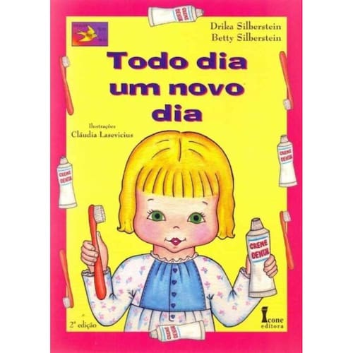 Bia acordou feliz! Foi ao banheiro, lavou o rosto, escovou os dentes, vestiu camiseta rosa, short azul e meias rosa e branca e foi tomar café da manhã com os pais. Mas não se esqueceu: fechou bem a torneira da pia, o tubo da pasta de dentes... pois gosta de deixar tudo arrumadinho para enfrentar o novo dia...