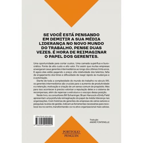 Se você está pensando em demitir a sua média liderança no novo mundo do trabalho, pense duas vezes. A hora é de reimaginar o papel dos gerentes. Uma oportunidade para cortar custos. Uma camada supérflua e burocrática. Foi assim que muitas empresas enxergaram seus gerentes intermediários ao longo dos últimos trinta anos. E agora elas estão pagando o preço: alta rotatividade, falta de engajamento dos times e dificuldade de reagir rápido. Diante da complexidade do mundo do trabalho no século XXI, os gerentes são cruciais para o aumento de produtividade, a retenção de funcionários, a motivação e criação de um senso comum de propósito. Com histórias de gerentes de empresas de vários setores e pesquisas na área de gestão, este livro indica as ferramentas necessárias para recolocá-los no centro, transformando-os no ativo organizacional mais valioso. Em Todo o poder aos gerentes , os consultores Bill Schaninger, Bryan Hancock e Emily Field apresentam uma profunda reimaginação do papel da média liderança nas organizações. Mostram como repensar o sistema de recompensas, promoções e a estrutura e escopo dos cargos gerenciais. Já os gerentes — de uma indústria, do varejo ou de uma empresa de tecnologia — serão capazes de ver seu papel numa perspectiva totalmente diferente. O ditado, afinal, é verdadeiro: as pessoas não pedem demissão de uma empresa, pedem demissão de um chefe. Mas o contrário também acontece: quem fica é fiel a seus gerentes.