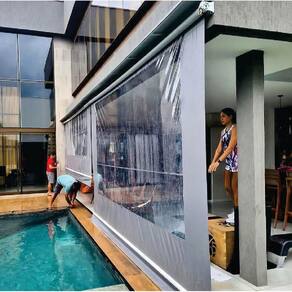 Toldo Cortina Retrátil, é uma solução moderna para ambientes comerciais e residenciais. É um kit completo, que vai montado, o que facilita a instalação.
