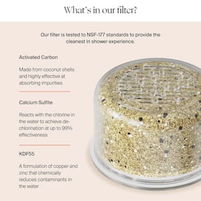 - FILTRAGEM DE AÇÃO TRIPLA TESTADA DE ACORDO COM OS PADRÕES NSF-177: Nosso chuveiro de última geração com filtros emprega carvão ativado granular, KDF-55 e sulfito de cálcio para diminuir significativamente o cloro, o sulfeto de hidrogênio, os metais pesados e muito mais. Proteja a cor e a textura do seu cabelo e desfrute de uma experiência de banho que deixa a pele e o cabelo livres dos efeitos nocivos dos contaminantes.
