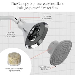 - MELHOR FILTRO PARA ÁGUA DURA COM RESULTADOS VISÍVEIS EM 30 DIAS: Em um estudo de percepção do consumidor, 96% dos participantes viram uma redução no acúmulo de produtos, 96% concordaram que a pele estava mais clara, 91% sentiram que o cabelo estava mais limpo, 91% notaram menos ressecamento e quebra, 87% sentiram menos ressecamento e 87% concordaram que seus cabelos estavam mais lisos. Eleito ícone de beleza Harper's Bazaar 2023, o Canopy Showerhead é um verdadeiro divisor de águas para sua rotina de beleza.