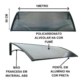 Toldo Clean 1x50cm - Praticidade, Estilo e Proteção Transforme suas áreas externas com o Toldo Clean, a solução ideal para proteger portas, janelas e espaços ao ar livre com eficiência e sofisticação. Produzido com policarbonato alveolar fumê de 4mm e suportes robustos em ABS, este toldo une resistência e leveza em um design moderno e funcional. Benefícios do Toldo CleanProteção contra raios UV: Bloqueia até 99% dos raios solares, preservando móveis, objetos e protegendo você do sol.Resistência ao clima: À prova dágua e neve, suporta variações de temperatura e impactos sem comprometer a estrutura.Design discreto e moderno: Ideal para varandas, janelas, portas e áreas de lazer, agregando valor estético e funcional ao ambiente.Instalação fácil: Acompanha kit completo de parafusos e manual, garantindo um processo rápido e seguro.Especificações técnicasDimensões: Largura 100 cm x Profundidade 50 cm.Material da cobertura: Policarbonato alveolar fumê 4mm.Suporte: ABS resistente, na cor preta.Peso: 1,72 kg.Resistência: Ideal para suportar chuvas, ventos e altas ou baixas temperaturas.Conteúdo do kit2 suportes em ABS mão francesa .1 placa de policarbonato alveolar 4mm na cor fumê.2 perfis de alumínio preto.Parafusos sextavados, brocantes, buchas e arruelas para montagem. Com o Toldo Clean, você une praticidade, proteção e design em um único produto. Proteja e valorize seus ambientes de forma eficiente e elegante Marca: Não Informado