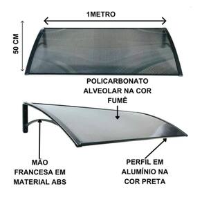 Toldo Clean 1x50cm - Praticidade, Estilo e Proteção Transforme suas áreas externas com o Toldo Clean, a solução ideal para proteger portas, janelas e espaços ao ar livre com eficiência e sofisticação. Produzido com policarbonato alveolar fumê de 4mm e suportes robustos em ABS, este toldo une resistência e leveza em um design moderno e funcional. Benefícios do Toldo CleanProteção contra raios UV: Bloqueia até 99% dos raios solares, preservando móveis, objetos e protegendo você do sol.Resistência ao clima: À prova dágua e neve, suporta variações de temperatura e impactos sem comprometer a estrutura.Design discreto e moderno: Ideal para varandas, janelas, portas e áreas de lazer, agregando valor estético e funcional ao ambiente.Instalação fácil: Acompanha kit completo de parafusos e manual, garantindo um processo rápido e seguro.Especificações técnicasDimensões: Largura 100 cm x Profundidade 50 cm.Material da cobertura: Policarbonato alveolar fumê 4mm.Suporte: ABS resistente, na cor preta.Peso: 1,72 kg.Resistência: Ideal para suportar chuvas, ventos e altas ou baixas temperaturas.Conteúdo do kit2 suportes em ABS mão francesa .1 placa de policarbonato alveolar 4mm na cor fumê.2 perfis de alumínio preto.Parafusos sextavados, brocantes, buchas e arruelas para montagem. Com o Toldo Clean, você une praticidade, proteção e design em um único produto. Proteja e valorize seus ambientes de forma eficiente e elegante Marca: Não Informado