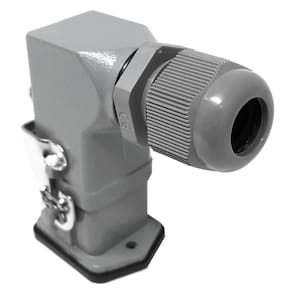 A carcaça do conector é feita de alumínio e possui um revestimento em pó a alta temperatura, garantindo durabilidade e resistência contra corrosão. A vedação de borracha nitrílica proporciona uma proteção IP65, tornando este conector resistente a poeira e à água.