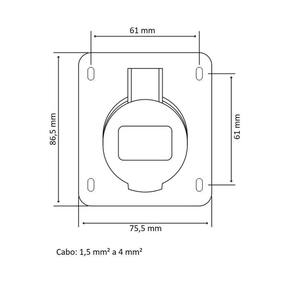 Atende a norma IEC 60309. Intercambiável com outros produtos desenvolvidos em conformidade com a norma IEC 60309. Possui grau de proteção IP44. Temperatura de utilização -25 C a 40 C. Parafusos para fixação não inclusos.