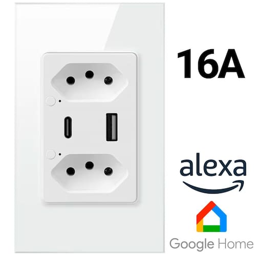 Especificações Técnicas Modelo: S2C-USB-CTensão de Entrada: 100V–250V AC (Bivolt)Corrente Máxima: 16APotência Máxima: 3680W (em 220V)Portas: 1x USB (5V/2.4A), 1x USB-C (5V/2.4A)Conectividade: Zigbee 3.0 (necessita de hub compatível)Compatibilidade: Tuya Smart, Smart LifeAssistentes Virtuais: Amazon Alexa, Google HomeMaterial: Plástico ABSCor: BrancaDimensões: 120 x 72 x 45 mmInstalação: Embutida, padrão brasileiro 4x2 Conteúdo da Embalagem 1x Tomada Dupla Inteligente Zigbee com USB e USB-C1x Manual de Instruções