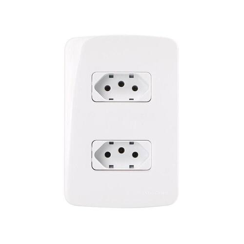 Tomada Dupla MarGirius B3 2P+T 10A com Placa 4x2 Branca