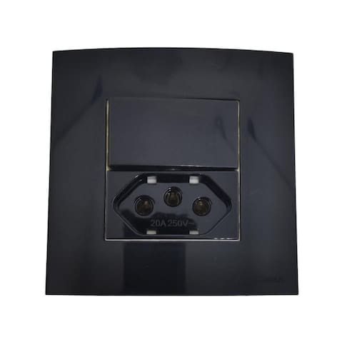 Tomada para embutir em madeira, MDF, MDP, Pedra, Marmore, Granito, Drywal ou derivados. Utilizada principalmente na marcenaria, ideais para peças planejadas como armários, cabeceiras, painéis, bancadas, balcões de cozinha, mesas para escritório, entre outras1 10a1 Tomada 3 pinos 2p+t 20A ajuste automático para 10AComposição: Materiais plásticos isolantes termoplásticos de engenharia e ligas metálicas condutorasComprimento: 80mm / Largura: 80mm / Altura 36mmDiâmetro de furanção: 70mm Marca: Não Informado