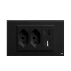 Tomada dupla de embutir com 2 tomadas elétricas, 1 porta USB e 1 porta Type C. Feita em vidro temperado, com proteção contra sobrecarga. Não é um produto inteligente (sem Wi-Fi).Tipo