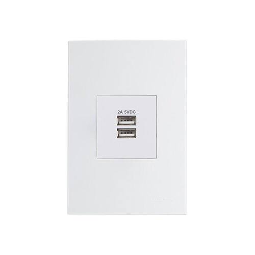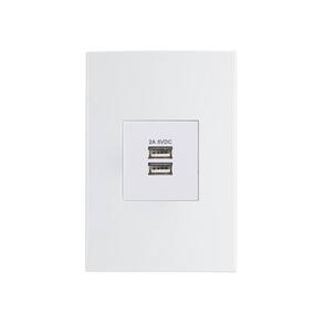 Tomada Duplo Carregador USB-A MarGirius Sleek 2A 10W com Placa 4x2 Branca