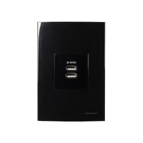Tomada Duplo Carregador USB-A MarGirius Sleek 2A 10W com Placa 4x2 Preto Ebony