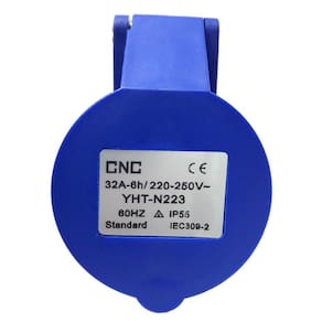 Características técnicas: - Tipo de tomada: Macho - Número de pinos: 2P+Terra - Corrente máxima: 32A - Modelo: Yht-N223 - Cor: Azul CNC