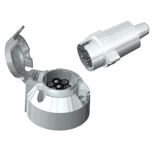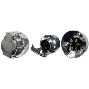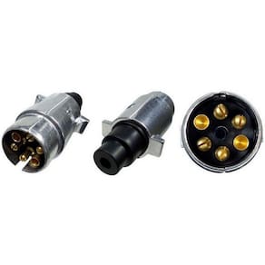 Tomada Elétrica para Engate Redonda 6 polos Completa - Alumínio Polido - 12/24V
