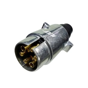 Características do produto: tipo: tomada elétrica de engate modelo: macho - 6 polos material: alumínio tensão: bivolt - 12v / 24v uso: ideal para reboques, trailers, carretinhas e conexões móveis