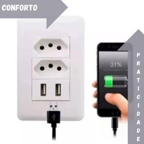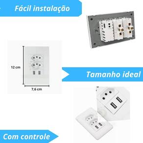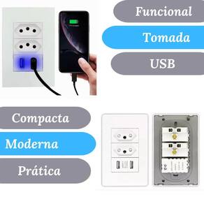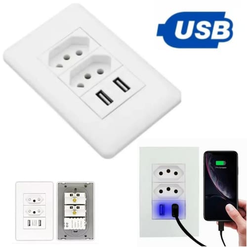 Tomada de parede com 2 entradas USB, Bivolt, Design moderno sem parafusos expostos, Fácil instalação.Tipo