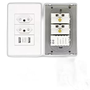 Tomada de parede dupla usb embutir bivolt 10a cor branco Descrição do anúncio: Simplifique sua vida com a tomada de parede completa com usb duplo bivolt. Este dispositivo versátil oferece duas tomadas padrão brasileiro e duas entradas usb, permitindo que você carregue seus dispositivos eletrônicos diretamente através de cabos usb, sem a necessidade de adaptadores. Ideal para um estilo de vida conectado, esta tomada de parede garante um carregamento rápido e eficiente, mantendo seus aparelhos sempre prontos para uso. Com um design elegante e moderno na cor branca e sem parafusos expostos, é a escolha inteligente para qualquer ambiente. Conteúdo da embalagem: 1 tomada de parede completa com usb duplo bivolt 2 tomadas padrão brasileiro 2 entradas usb Características: Cor: branca Modelo luxo sem parafuso exposto Recarrega dispositivos móveis com conexão usb Bivolt Design elegante e moderno Fácil de instalar: só ligar os fios da energia que vem da parede ou que estavam na tomada antiga Especificações: Tensão de entrada: bivolt ac 110-250 v 50/60hz Corrente nominal das tomadas: 10a cada Saída usb: Se usando 1 porta usb: 5v 2100ma Se usando 2 portas usb juntas: 5v 1000ma Dimensões aproximadas: Altura: 12 cm Comprimento: 8 cm Largura: 4 cm Peso: 86 g Tamanho do painel: padrão universal Principais perguntas sobre o produto e respostas: 1. A tomada é compatível com qualquer tipo de dispositivo usb Sim, a tomada de parede completa com usb duplo bivolt é compatível com qualquer dispositivo que utilize carregamento usb. 2. Como faço a instalação desta tomada A instalação é simples: basta ligar os fios da energia que vêm da parede ou que estavam na tomada antiga à nova tomada. 3. Qual a diferença na saída de amperagem quando uso uma ou duas portas usb Quando utiliza uma porta usb, a saída é de 5v 2100ma. Se utilizar as duas portas usb simultaneamente, a saída é de 5v 1000ma para cada porta. 4. Esta tomada funciona com todas as voltagens Sim, ela é bivolt e funciona em tensões de 110v a 250v. 5. A tomada possui proteção contra sobrecarga Sim, a tomada foi projetada para suportar a corrente nominal de 10a em cada tomada, garantindo segurança durante o uso. Marca: Não Informado