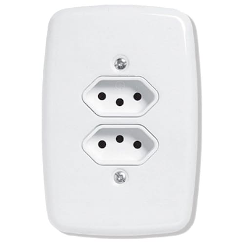 Especificações Gerais: Cor da Placa e Tecla: Branco Cor do Corpo: Branco Material: Placa em ABS, corpo em poliestireno, contatos em latão Produto Certificado Corpo com Tratamento Anti U.V.A. e U.V.B. Resistente ao calor Não propaga à chama, com classificação para GW 650°C (GW = Glow Wire Test - Ensaio fio incandescente) Deve ser instalado por pessoa qualificada, conforme requisitos da NBR 5410