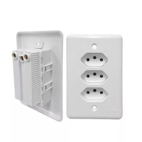 Tomada tripla 10 A 250V Monobloco Stylus ILumi - Garantia 5 AnosQtdade Tomadas: 3 TomadasTamanhoplaca: 4x2Material Placa: Plasitco IsolaneteCertficação: InmetroCor: BrancaQtdade Tomadas: 3 TomadasProduto de Alta Qualidade e Segurança, e sofisticação que deixa o Ambiente mais Aconchegante.
