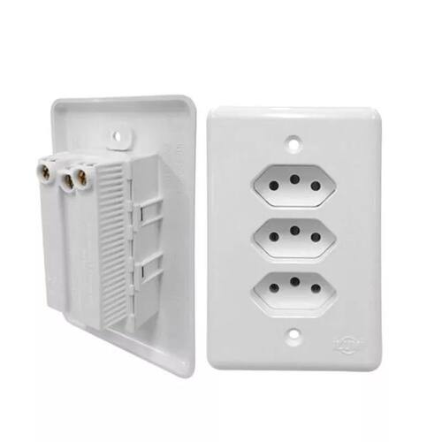 Tomada tripla 10 A 250V Monobloco Stylus ILumi - 5 Anos Qtdade Tomadas: 3 Tomadas Tamanhoplaca: 4x2 Material Placa: Plasitco Isolanete Certficação: Inmetro Cor: Branca Qtdade Tomadas: 3 Tomadas Produto de Alta Qualidade e Segurança, e sofisticação que deixa o Ambiente mais Aconchegante. Ean: 37898493994913
