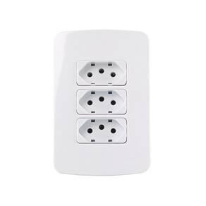 Tomada Tripla MarGirius B3 2P+T 10A com Placa 4x2 Branca