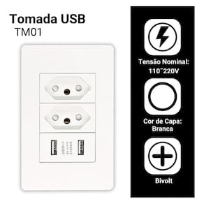 Essa tomada possui um interruptor, duas portas USB e uma tomada de 3 pinos padrão brasileiro, oferecendo maior facilidade para carregar seus aparelhos eletrônicos. Além disso, conta com luzes LED indicadoras que mostram o status de carga das portas USB.