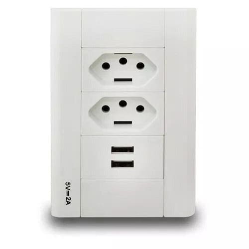 Recarregue seus aparelhos Usb sem Adaptadores ou Carregadores Corrente Nominal de 10a para cada tomada Tensão nominal: 110v / 250v ( Bivolt ) Se estiver usando 1 porta USB: 5V 2100ma Se estiver usando 2 porta USB: 5V 1000ma para cada porta.