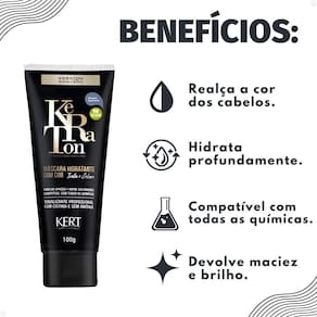 Keraton Banho de Brilho é uma máscara tonalizante hidratante com cor, vegana, indicada para ser aplicada entre colorações, e sempre que seus cabelos estiverem opacos e desbotados. Pode ser utilizado imediatamente após relaxamentos, alisamentos e permanentes ou entre colorações. Keraton realça a coloração dos cabelos, dando mais vitalidade e devolvendo o brilho natural, de forma extremamente suave e sem agredir as fibras. É ideal também para luzes e reflexos. Keraton Banho de Brilho não contém amônia nem oxidantes. Keraton Banho de Brilho é um excelente corretivo, pode ser aplicado também após uma coloração mal sucedida.