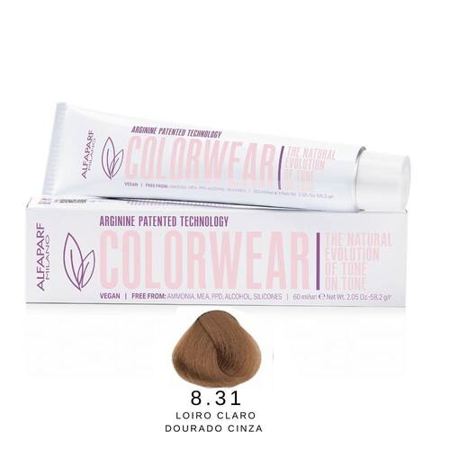 Tinta Colorwear Alfaparf 60ml Cor 8.31 Louro Claro Dourado Cinza Tonalizante em creme gel para todos os tipos de cabelo. Alfaparf Color Wear oferece variedade de tonalidades para colorir os fios e proporcionar luminosidade intensa. Tonalizante Alfaparf Color Wear contém uma combinação de óleos semifermentados de origem natural com propriedades nutritivas, antioxidantes, protetoras e antifrizz. Além disso, sua fórmula age de forma semi-permanente, garante brilho, promove um efeito tom sobre tom incrível e mascara os primeiros fios brancos sem alteração da cor base natural. Não possui amônia. Conselho de Aplicação