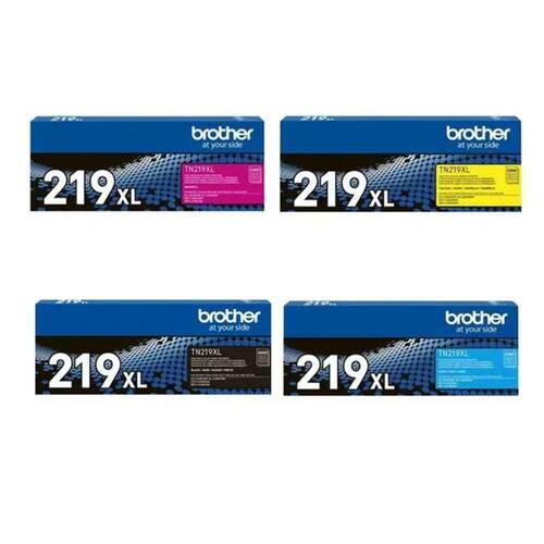 Cartucho de Toner Brother TN219XL conjunto de 4 peças, contendo uma peça de cada cor.
