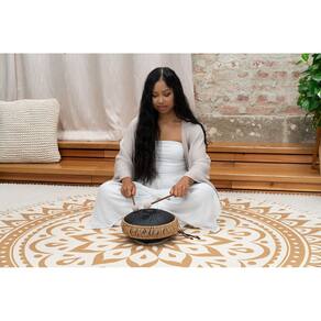O Tongue Drum Medium Octave de Aço Meinl Sonic Energy 10" é feito de aço inoxidável de alta qualidade. Suas oito notas abrangem duas oitavas, gerando um som meditativo e encantador, semelhante ao de um handpan. Um orifício acústico localizado na parte inferior do tambor pode ser vedado com uma tampa de silicone para produzir um som ainda mais compacto. Três pés de silicone na base impedem que o tambor escorregue. Ele pode ser tocado com os dedos ou com baquetas. Para começar, basta colocá-lo sobre uma superfície plana ou no colo. O tambor acompanha duas baquetas de madeira com cabeças de borracha macias e um elegante estojo de transporte com zíper e alça.