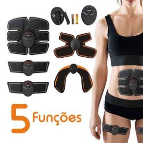 Tonificador Muscular 5 Em 1 Pernas Abdomen Biceps Bumbum Estimulo Elétrico Com apenas 12 minutos você pode começar a tonificar e fortalecer os músculos do corpo, é fino e feito de silicone flexível.A dureza e espessura dos materiais são projetados para seguir o contorno do corpo. Ele é projetado para trabalhar os músculos através de estimulação elétrica. Não é um equipamento médico. Essa tecnologia penetra diretamente no tecido muscular oferecendo exercício com pouco ou nenhum movimento. Não causa danos ao corpo e apenas permite desfrutar de uma boa forma física com um mínimo de exercício. Isso ajuda a obter músculos mais fortes e um corpo tonificado. A almofada de gel ABS e o equipamento de fitness podem ser removidos. O dispositivo é mais eficaz se o acolchoamento for achatado quando em uso. EMS estimulação elétrica muscular treinamento é um efeito sobre os músculos por um dispositivo que envia sinais elétricos através de eletrodos conectados à superfície da pele. Dessa maneira, formam-se impulsos semelhantes às contrações musculares durante o treinamento de força. Durante o exercício normal, ocorrem contrações e, como resultado, o crescimento muscular. As tecnologias EMS aumentam a intensidade dessas reduções usando micro-impulsos sutis. O efeito de tal treinamento não depende dos esforços aplicados, mas do conhecimento da biomecânica do treinador, da posição correta do corpo, da frequência, da profundidade e da força dos impulsos recebidos do simulador. Especificações: Alimentação: 02 duas pilhas para cada controlador Pilha AAA não incluídas Frequência: 1-100HZ Use modo: 6 modos de tempo de trabalho: 12 minutos Saída: 9.8ma Material: ABS Cor: preto