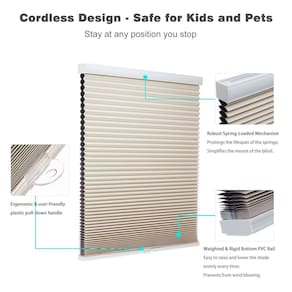 Why Choose MYshade Cordless Shades MYshade é uma marca subsidiária da Mingyang Blinds, que vende dezenas de milhões de persianas para a Europa todos os anos, ganhou sua reputação colocando a qualidade em primeiro lugar e desenvolvendo persianas mais bonitas e funcionais. As persianas sem fio provaram ser seguras para crianças e animais de estimação. No teste de laboratório, os sistemas mecânicos sem fio MYshade são capazes de suportar puxar para cima e para baixo mais de 5000 vezes, o que significa que você pode usar persianas sem fio sem se preocupar com MYshade falha da operação. Especificação do produto Material principal: Tecido não tecido Design: sem fio Tipo: persianas horizontais Tipo de montagem: Montagem interna e externa Largura da ripa: 3,8 cm Largura opcional: 40,6 cm/43,2 cm/45,7 cm/48,3 cm/50,8 cm/53,3 cm/55,9 cm/58,4 cm/61.0 cm / 68.6 cm / 71.6 cm .1 cm / 76,2 cm / 78,7 cm / 83,8 cm / 86,4 cm / 88,9 cm / 91,4 cm / 96,5 cm / 99 cm / 104 cm / 116,8 cm / 132,1 cm / 137,2 cm / 182,9 cm cm Altura opcional: 12 7 cm / 183 cm Como escolher um tamanho adequado A altura deve ser maior do que a altura da moldura da janela. Montagem interna: 1,27 cm mais estreita do que a largura da moldura da janela. Montagem externa: 7,6 cm mais larga do que a largura da moldura da janela. - Seguro para crianças e animais de estimação: as persianas sem fio são um tipo de dispositivo mecânico avançado que remove o risco de estrangular crianças e animais de estimação e oferece uma aparência limpa. - BLOQUEIO DE LUZ PERTECT E ISOLAMENTO DE CALOR: Blackout, basta puxar as persianas para escurecer o cômodo, muito adequado para soneca e hora de dormir. A estrutura exclusiva de favo de néctar das flores permite que o ar seja armazenado na camada oca, mantendo o ambiente em temperatura constante e isolamento térmico. A função anti-UV e isolamento térmico protege efetivamente os itens domésticos. - Fácil de puxar para baixo e para cima: as persianas MYshade são muito fáceis de puxar para baixo e para cima. Para controlar a luz em seu quarto, basta levantar ou puxar para baixo a partir da parte inferior, ela permanecerá onde você parou. - Materiais ecológicos: Feito de tecidos não tecidos ecológicos, depois de exposto à luz solar por anos, ele ainda manterá quase o mesmo, sem descascar, sem rachaduras, sem mudança de cor e sem cheiro desagradável. - FÁCIL DE LIMPAR E INSTALAR: As persianas celulares têm estrutura de favo de néctar das flores exclusiva para ajustar a luz, limpá-la, use um pano pequeno, um espanador de penas ou um aspirador de pó manual com uma escova macia. Todos os acessórios necessários estão incluídos no pacote, e o manual de instalação e o vídeo ajudarão muito na instalação das persianas das janelas, você pode concluir a instalação em minutos.