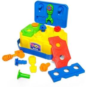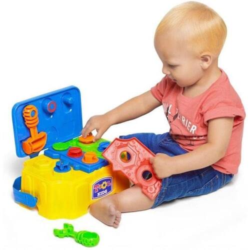 Maleta e mini bancada de ferramentas!Para levar para todo lugar e montar onde quiser uma mini bancada de trabalho. Colorida e equipada com muitas ferramentas e acessórios. A brincadeira será montar e desmontar, parafusar e soltar parafusos e o que mais a imaginação quiser!Contém:1 Maleta1 Chave de Fenda1 Chave de Boca1 Martelo3 Formas Planas4 Parafusos2 PregosHabilidades desenvolvidas:Adaptação social e interaçãoAprendizado pela imitaçãoConhecimento GeralExpressão e comunicaçãoImaginação e criatividadeResolução de problemasEspecificações:Fabricante: Calesitaavisos importantes:Idade Recomendada: A partir de 12 meses.As cores e medidas podem variar entre as imagens e especificações mostradas acima.