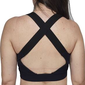 O Top Salomon XA Sonic Skin Fit Feminino de Alta Compressão com dupla tira que se trançam nas costas e que não machucam e com parte traseira aberta em U.
