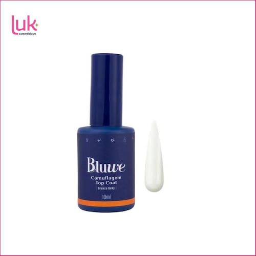 O Top Coat Camuflagem Branco Baby Bluwe possui fórmula flexível e aspecto siliconado, o que o torna perfeito para finalizar diversos procedimentos, incluindo blindagens. Sua durabilidade é incrível, evitando lascas indesejadas.