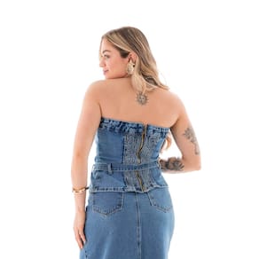 O top corset jeans é a peça perfeita para quem ama unir estilo e atitude. Confeccionado em denim encorpado, possui modelagem justa que valoriza a silhueta e realça a cintura. O decote tomara que caia traz um toque feminino e sofisticado, enquanto a faixa com fivela frontal adiciona charme e modernidade ao visual.