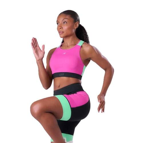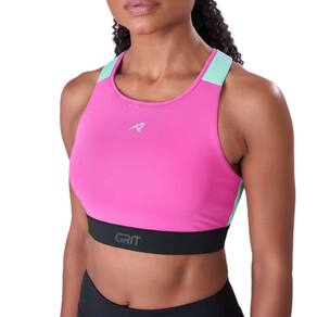 O top esportivo de alta sustentação GRIT Bossa Nadador é um equipamento projetado para longas distâncias e dias de competição. É indicado para quem busca um top antiflacidez e prefere o ponto de sustentação central. A tecnologia Sistema Firmness Control reduz a vibração muscular, prevenindo o rompimento dos ligamentos das mamas. A modelagem nadador oferece liberdade de movimento, com decote alto e alças acolchoadas que aliviam a pressão sobre os ombros. Possui tecnologia Zero Atrito para reduzir pontos de atrito e True-Dry para rápida evaporação do suor. Conta ainda com bolso nas costas com sistema exclusivo que evita a saída acidental de objetos, bojo removível e Proteção Solar FPU 50+.