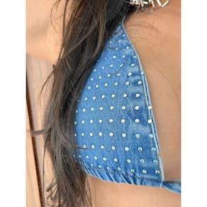 Destaques da peça:• Jeans com efeito oxi moderno• Aplicações em brilho que iluminam o visual• Amarração ajustável que valoriza o corpo• Modelagem atual e tendência Marca: Não Informado