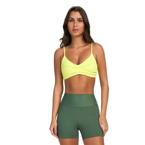 A modelagem queridinha não podia ficar de fora da coleção. O diferencial desse top são as alças em elástico personalizado, o que deixa a peça muito mais interessante e estilosa. O bojo é removível e o tecido confortável tem boa sustentação e proteção UV.